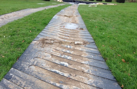 Ne détériorez plus les pelouses, les terrains aménagés, les sols carrelés, le bitume… Constituez-vous une route provisoire, efficace et protectrice, grâce aux plaques de roulage PROTEX !
